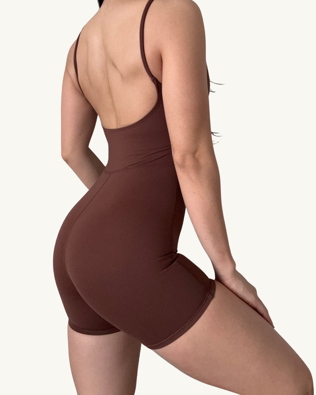 全身をきれいに見せるフィット感と、女性らしいバックデザインが特徴です。
